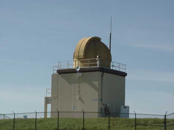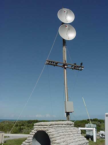 Between Parking Areas 4 and 5, on the left, is a "hill" that is used by Kennedy Space Center and Canaveral Air Force Station as a camera site for launches. Cameras are brought in on a tracker and removed when operations are completed. Next to the "hill" is a lightning detector. Any lightning in the area is recorded by this device and information is relayed to Kennedy Space Center. As you know, lightning is one of the most dangerous phenomena in Florida and it's comforting to know we're monitored so closely in this area. |  |