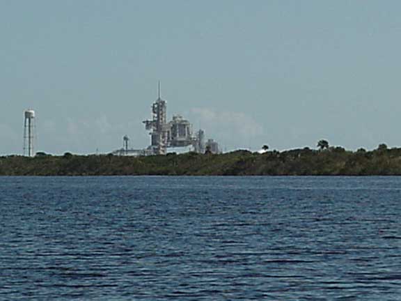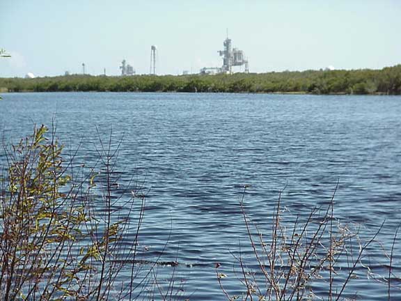 This view of Shuttle Pads 39A and 39B and the Vehicle Assembly Building is breath taking. The VAB has more open cubic feet of space than any other building in the world. It has been known to rain and be very foggy INSIDE the top of the VAB. A launch pad very often will have a shuttle sitting beside it ready for a space mission. This is the closest you will get to this view without going to Kennedy Space Center itself. In a place like this where nature and technology come together and are able to co-exist, it's hard to resist taking a photo. |  |