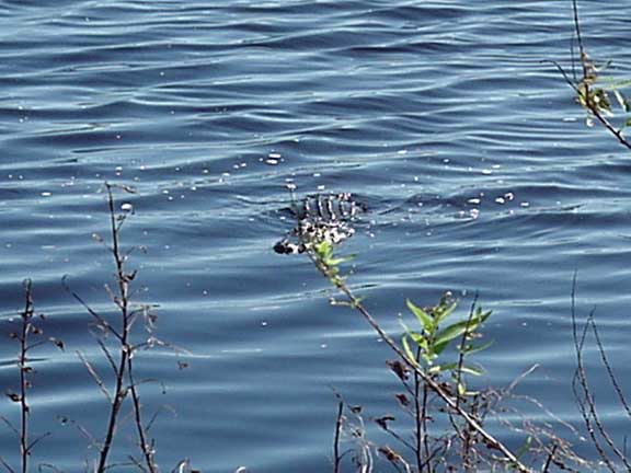 Between Vistas 4 and 5, look for sunbathing alligators along the roadside. Please do not stop in the middle of the road or on the grassy area to view them! You can stop safely in vista 6 to observe these large reptiles. Take care! These animals are WILD and, despite rumors, move fast when attacking either on land or in the water.