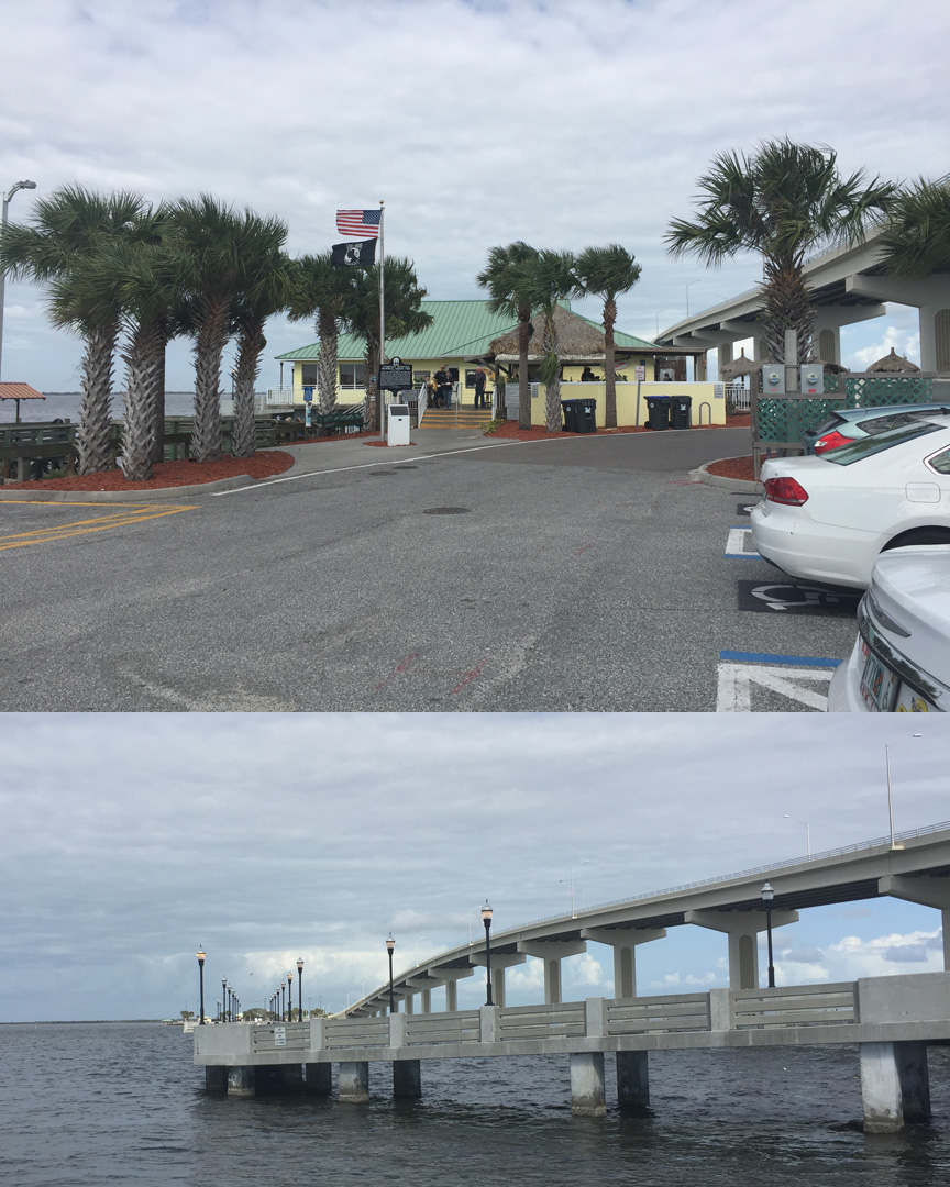 This pier was the western end of Walker Bridge the first bridge linking Titusville to Merritt Island. Built in 1922, the hand-cranked, wooden drawbridge served the area until preparations for a modern causeway began in the late 1930s. Causeway construction halted following the United States entrance into World War II. A temporary connection was built linking the unfinished causeway to the bridge. In 1942, an Army transport laden with soldiers and equipment failed to make the turn at this juncture, which resulted in an accident that claimed the lives of six soldiers. Several inmates from a labor crew working nearby aided in the rescue. Despite saving several soldiers and recovering the bodies of the deceased, they received little public recognition for their efforts. After the war, construction resumed, and the causeway opened in 1949. Local citizens petitioned the U.S. Army Corps of Engineers for ownership of this remaining part of Walker Bridge for use as a public fishing pier. Valued by locals and tourists alike, the pier has been restored through the generosity of the local community to ensure it will remain a cherished gathering place for generations to come.