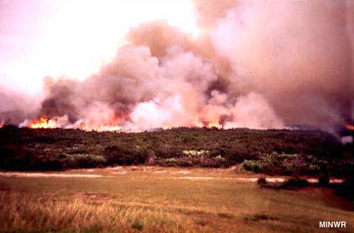 One of the most potent natural forces is fire. Wildfires are part of the natural cycle in this area. Without fire, the marsh would be taken over by shrubs, and the plant community would change. The same is true for the pinelands. If fires are suppressed, the pines will gradually yield to the shade of the hardwoods. Fire is the principle force, which created the tremendous plant diversity on Merritt Island, and it is one of the best management tools for maintaining it.