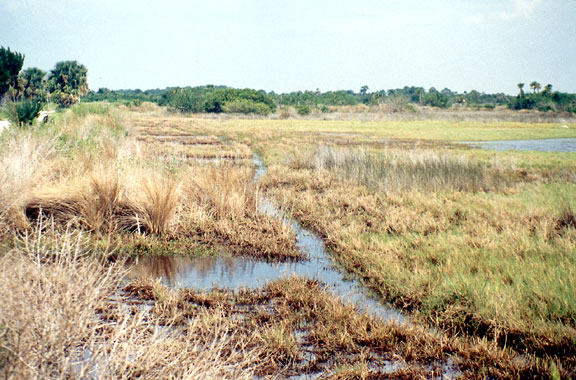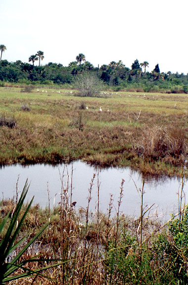 Imagine a broad, flat expanse of salt marsh stretching from where your car is parked to the Indian River, a distance of about 1 mile. The only obstruction is an occasional hammock of palms or a mangrove-rimmed pond, and behind you, on higher ground, slash pines. Marsh streams gracefully wind through the marsh and provide a thoroughfare for microscopic plants and animals, shellfish and fish. Egrets and herons are poised along the stream edge, like spearfishermen patiently awaiting a meal. Secretively, sparrows search for insects in the chest-high grass. Occasionally, tides aided by a strong wind flood the marsh, and on the ebb, nutrient-laden waters are exported to the river. The marsh and river are one.