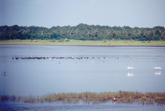 Natural salt marshes such as this have all but disappeared on Florida's east coast, giving way to widespread coastal development. NASA's intervention saved the northern half of Merritt Island from development, but dikes constructed for mosquito control purposes in the 1950's eventually altered most of the salt marshes. Today, an intensive management program developed between the refuge and our local Mosquito Control District has seen the restoration of some of these marshes. Other areas are being managed as shallow water impoundments, which benefit a variety of other animals. Today, the Black Point area attracts more species than ever before and is considered one of the premier birding areas in Florida. |