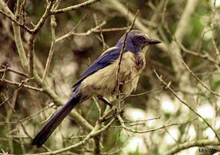 Florida Scrub-Jay in the brush at Merritt Island National Wildlife Refuge.