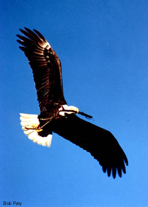 In this interesting display, a female bald eagle is enticing the male to mate with her. |