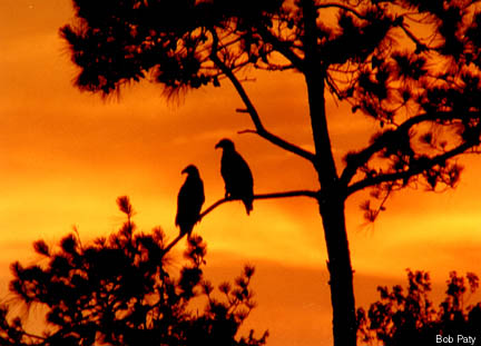 Two bald eagles survey their domain as the sun sets on the Merritt Island National Wildlife Refuge. |