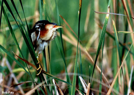 The least bittern, shown here is very shy, usually retreating into the reeds before you can blink your eyes. They are about the size of a mourning dove with very large feet and strong legs. |