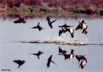 Taking off from a pond, these mottled ducks are year round residents of Florida. |