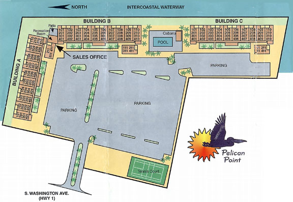 Pelican Point consists of three buildings of four stories each, and every building is serviced by an elevator. Because the property extends out into the Intercoastal Waterway, all of the buildings are built facing the water. Virtually every unit has a magnificent and unobstructed water view, looking either north along the Intercoastal, or east towards Cape Canaveral and Merritt Island. Four units have views overlooking the 52 foot heated swimming pool.Pelican Point was built in 1985 entirely of concrete, ensuring the maximum in durability, privacy, and sound-proofing. All three buildings have recently been re-roofed, the parking lot resurfaced, and the exterior as well as the interiors of the buildings have been repainted.